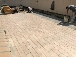バルコニーの床タイルも工事が進み、鮮やかなテラスになってきました。最近は暖かい日も多くなってきたので、これだけでも私はバルコニーに出て日向ぼっこをしたくなります!この後植栽が入りライトアップも設置しますので、ますます癒し系のバルコニーになっていくのではないかと思っています。楽しみです!
