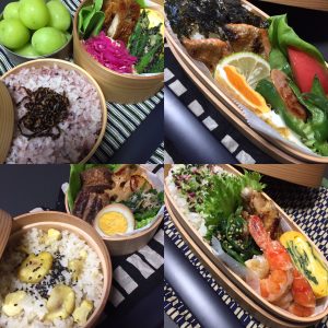 おかずの内容によっては、プラ容器、ステンレスも使用しますが、古典的なお弁当箱もいいものです。
