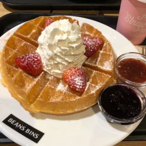 ストロベリーワッフル🍓 出来立てのワッフルは生地もサクサクで生クリームも甘すぎずペロッと完食。