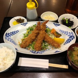 豚ロースが巻いてある海老フライはボリューム満点です。