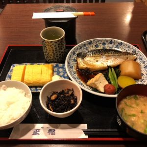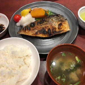 日替りの煮魚定食(この日はサバ醤油煮)+玉子焼き(ハーフ)