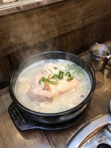 サムゲタンは鶏肉と高麗人参、ファンギなどの漢方やニンニク、クルミ、ナツメなどを一緒に煮込んだ薬膳料理です。