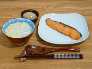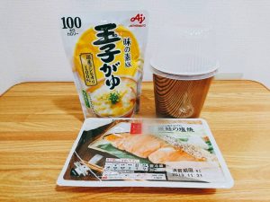 夜→玉子がゆ・焼き鮭・おでんの卵(ちくわも買いたかったのですが売り切れでした(T_T))