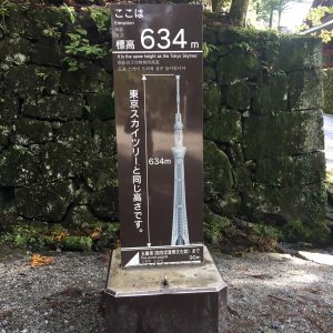 参道の途中にはこんな看板もあり、スカイツリーと同じ高さにいることに驚きました!