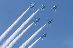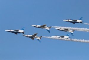 ご存知の方もいらっしゃると思いますが、ブルーインパルスとは、航空自衛隊の存在を多くの人々に知ってもらうために、航空自衛隊の航空祭や国民的な大きな行事などで、華麗なアクロバット飛行(これを展示飛行と呼びます)を披露する専門のチームのことです。