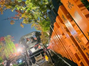 夜は着物を借りて人力車で京都の町をまわったり、昼間とはまた違った雰囲気でした。