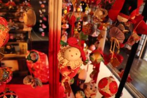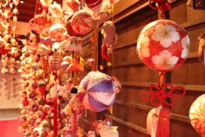 柳川市観光案内所では、無料で雛人形と柳川まり、さげもんを観ることができます。