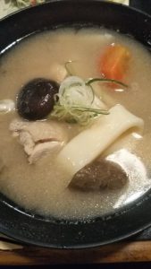 大分のだんご汁は「やせうま」という小麦粉で作った平たい麺が入っています。