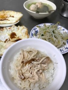 ジーロー飯(鶏肉飯)は細かく裂いた鶏のムネ肉やササミをご飯にのせ鶏油と甘口のタレをかけたもので、本場では七面鳥を使いますが、台北では鶏肉を使っていました。