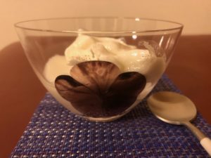 それでは食べてみましょう。スガハラの器とクチポールのデザートスプーンにしてみました。