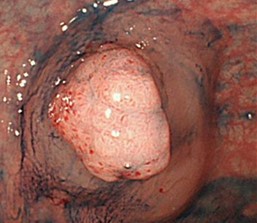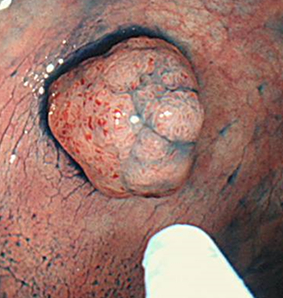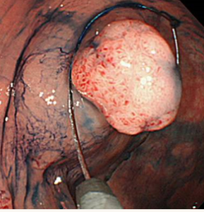 また、有茎性のポリープ(茎のあるキノコの様な形をしたポリープ)も基本的には適応外となります。有形性のポリープの場合は、茎の部分に血管が走っており、切除する場合に必ず血管を切断することになってしまうため、高周波電流を用いないCSPでは切除後に出血が止まらなくなる可能性があります。このため、有形性のポリープの場合は、高周波電流を用いて血管を焼き切ることで切除と止血を兼ねた切除方法で切除します。