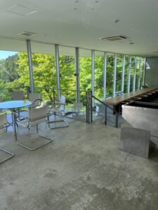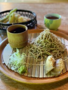 森林浴を楽しんだ後は、久しぶりに若杉山の中腹にあるお蕎麦屋さんと絶景カフェへ。同じ敷地内にあります。