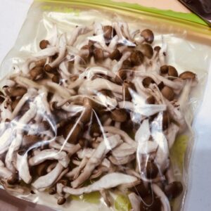水洗いすると風味が落ちるので、洗わず石付きを取り小房に分けて冷凍します。こうすると約1ヶ月持つそうです。