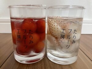 写真左が山形県産佐藤錦、右が長崎県産と佐賀県産白いちごを使用しています。美味しくいただきました。