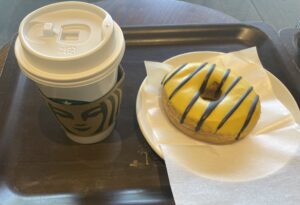 いつものようにスタバに行きました。バナナクリームドーナツです。バナナクリームがドーナツの中に入っています。バナナ好きにはたまりませんね。