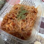 こちらは白滝のトマトパスタ風。ニンニクが効いており食欲をそそる上、白滝で低カロリーという優れもの。