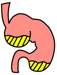 胃の上部の膨らんだ部分に食べ物が残るため、胃酸が出やすいのが特徴です。これにより、胃もたれ、胸焼けのような症状が出やすいと言われています。