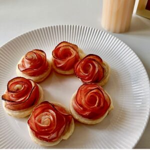 私は先日頂いたりんごと市販の冷凍パイシートを使って、バラのアップルパイを作りました。とても簡単なのに見栄えもいいため、ちょっとした時に役立ちます。