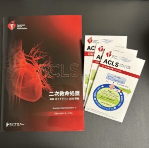 現在は、ACLSプロバイダー(二次心肺蘇生法のスキルを学べる資格)に向けて勉強中です。